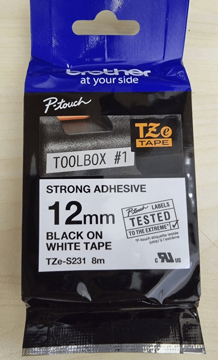 Brother P-touch 12mm TZ-S231 Strong Adhesive Tape. Black on White
