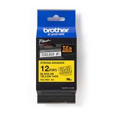 Brother P-touch 12mm TZ-S231 Strong Adhesive Tape. Black on Yellow