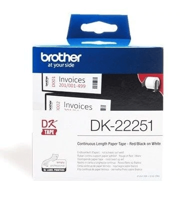 Brother DK-22251 Continuous Paper Tape. 62mm x 15.24m. Red On White